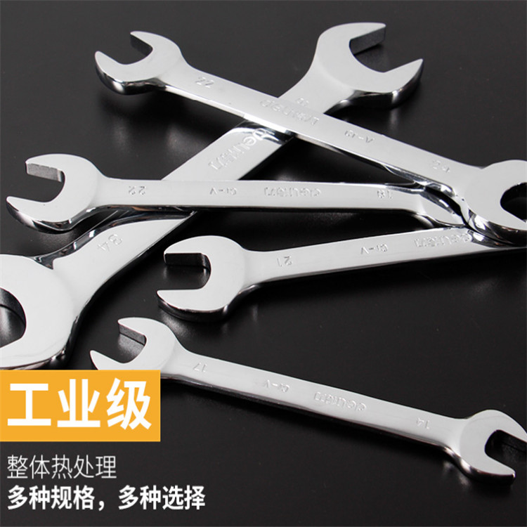 得力鏡面雙開口扳手扳手整體淬火,硬度可達(dá)到HRC42-48,實測扭矩可達(dá)到國標(biāo)1.5倍之上。