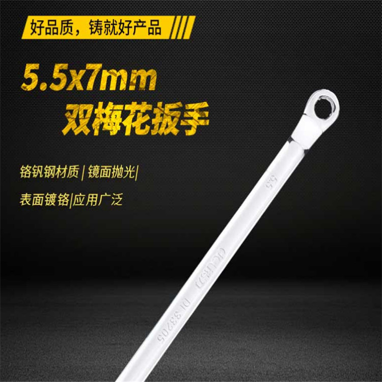得力鏡面雙梅花扳手表面鏡面研磨后鍍鉻處理,美觀耐腐蝕。