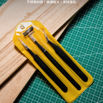 得力工具不銹鋼鑷子彎頭細(xì)尖頭防靜電小鑷夾小夾子維修工具套裝