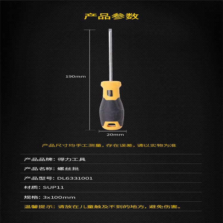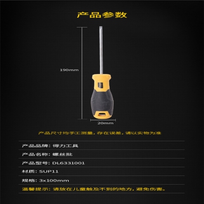 得力螺絲刀刀桿SUP11材質(zhì),PP+TPR雙材料手柄,刀頭帶強磁