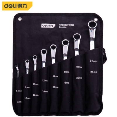得力 鏡面雙梅花扳手套裝梅花扳手8件套