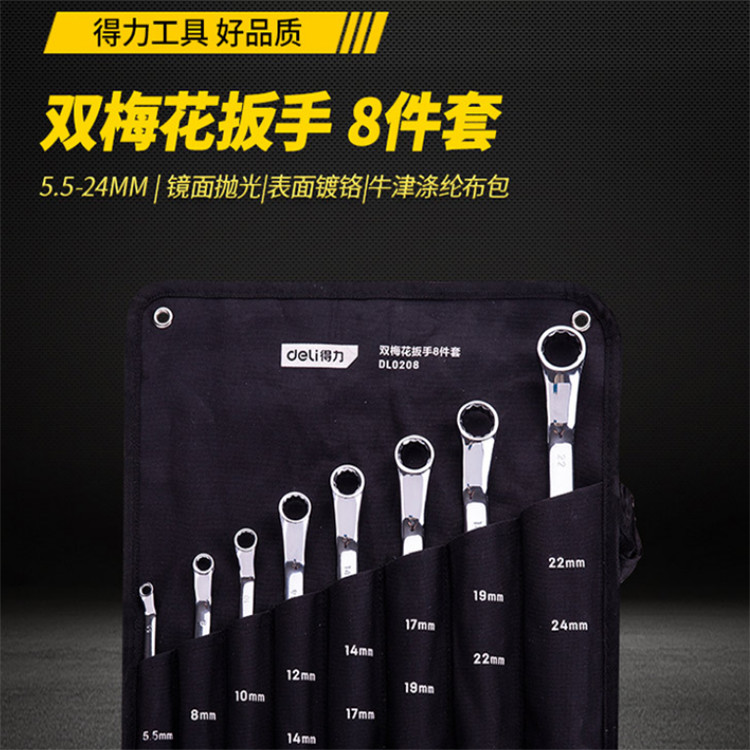 得力 鏡面雙梅花扳手八件套,更方便應(yīng)對各種場合。