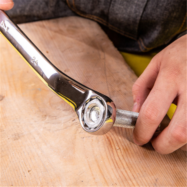 得力 鏡面雙梅花扳手采用鉻釩鋼鍛造,扭矩達到國標1.5倍以上,表面精拋鍍鉻。