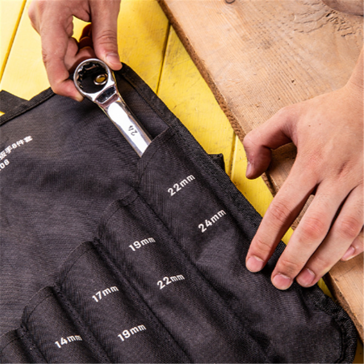 得力 鏡面雙梅花扳手布包采用6x450針織數(shù),內(nèi)層上膠,韌性更強,金屬掛扣,轍口處雙層縫紉,強度更高。