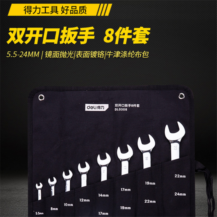 得力雙開(kāi)口扳手8件套雙頭呆板扳手