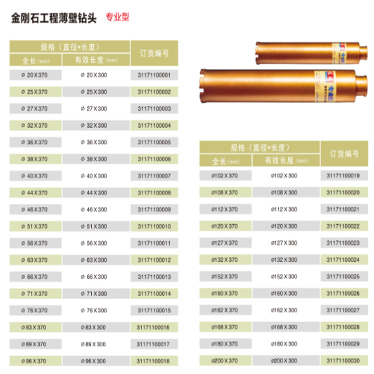 東成金剛石工程薄壁鉆頭的產(chǎn)品參數(shù)