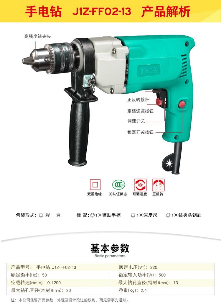 東成DCA手電鉆J1Z-FF02-13電動工具調(diào)速正反轉(zhuǎn)重型電鉆多功能