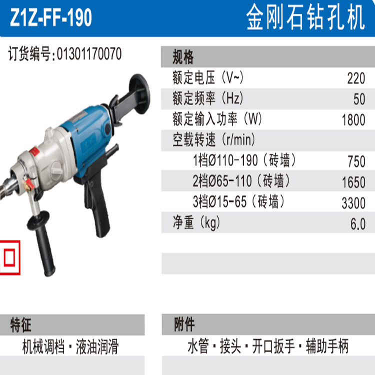 東成金剛石鉆孔機(jī)Z1Z-FF-190大按鈕開關(guān)工學(xué)舒適握把,舒適耐用,