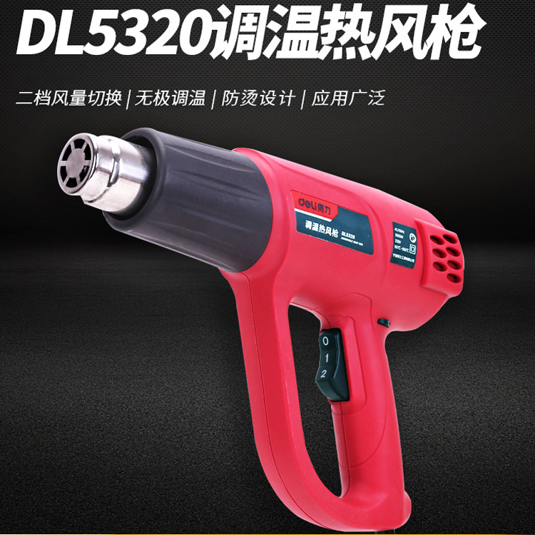 得力調(diào)溫?zé)犸L(fēng)槍DL5320烤槍尼龍不銹鋼材質(zhì)吸熱收縮軟化熱風(fēng)機(jī)