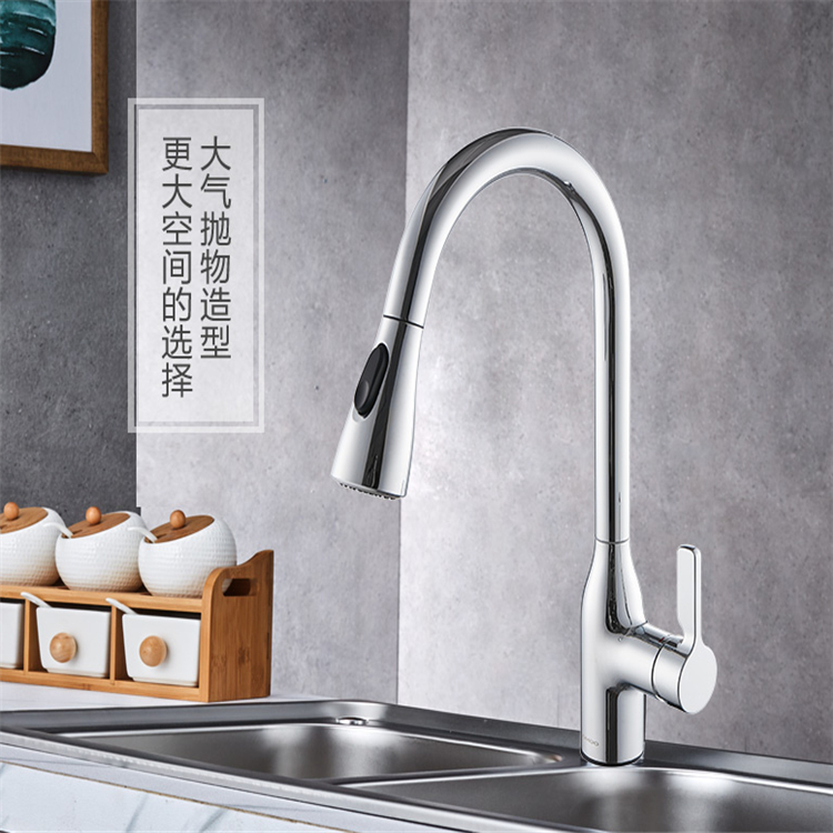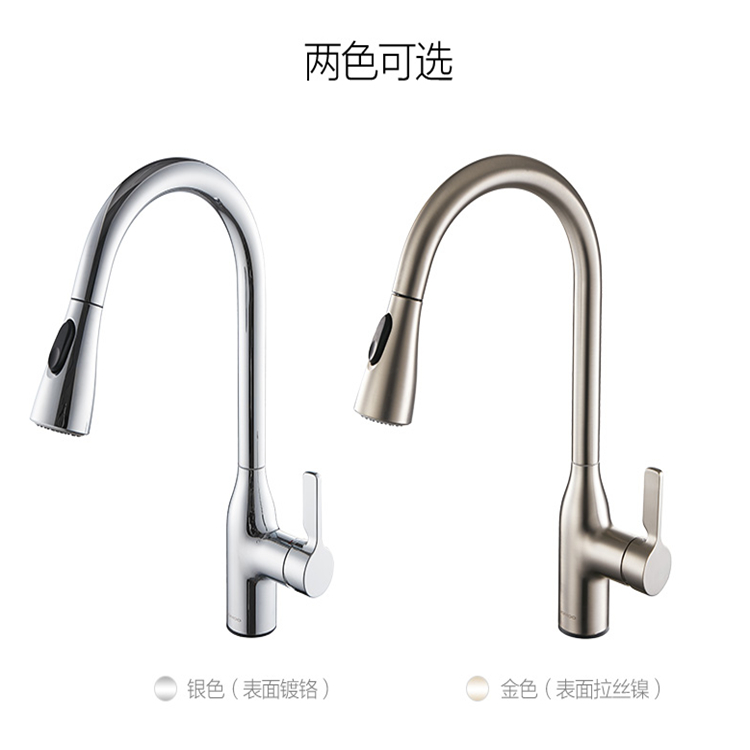 抽拉廚房龍頭化學性能穩(wěn)定,抗腐蝕性高,耐磨損,長久使用光亮如新。