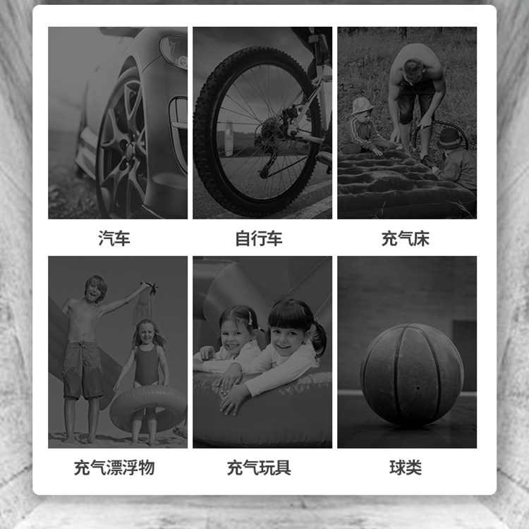 充氣泵適用于小轎車、SUV、商務(wù)車、摩托車、自行車、皮劃艇、