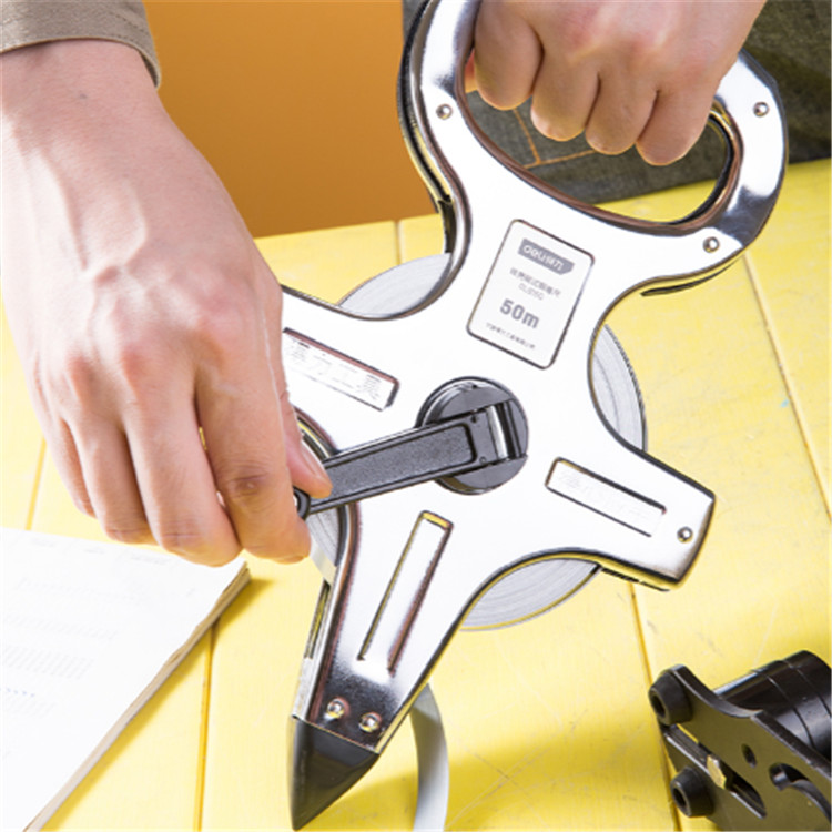 得力鐵殼架式鋼卷尺50m×12.5mm高精度鋼架尺架式鋼卷尺大卷尺長(zhǎng)鋼卷
