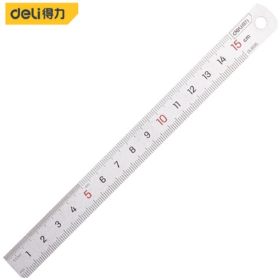 得力15cm鋼直尺量程式刻度,清晰、準(zhǔn)確、耐磨。