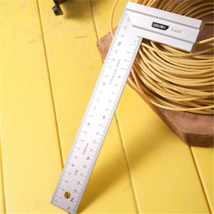得力鋼角尺250mm尺身與底座連接緊固,測量精準。