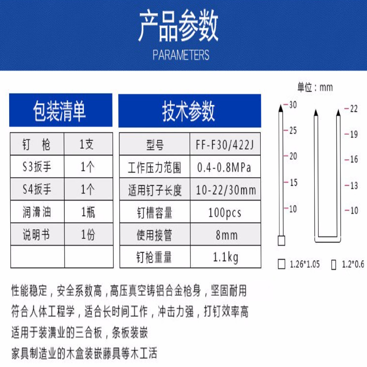東成氣動直釘/碼釘兩用槍FF-F30/422J堅固耐用,省時省力,