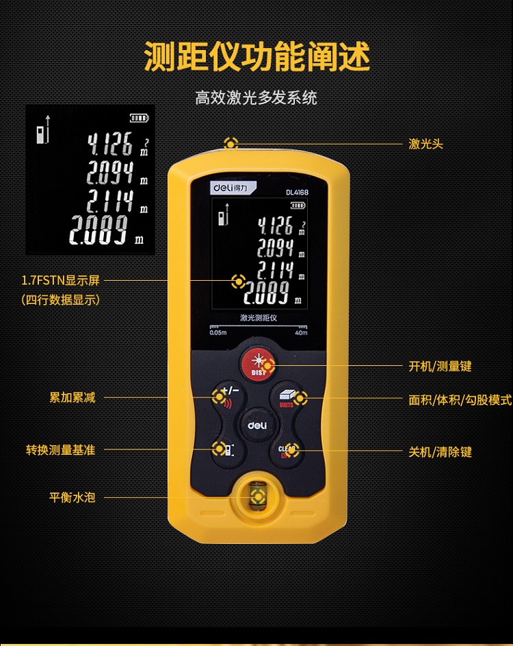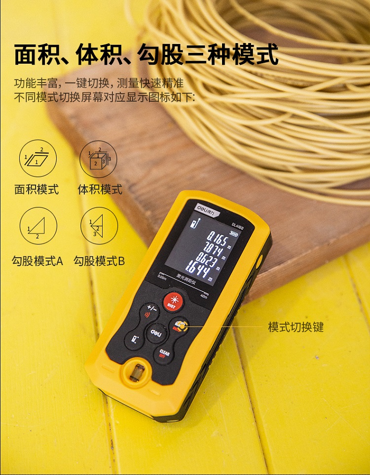 得力激光測(cè)距儀手持式高精度紅外線面積測(cè)量?jī)x量房?jī)x激光尺電子尺