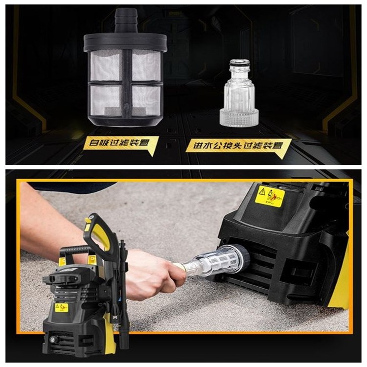 高壓清洗機(jī)雙重過濾配置,可將較大雜質(zhì)過濾在外,保護(hù)發(fā)動(dòng)機(jī)不受損壞。