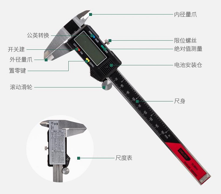 電子數(shù)顯油標(biāo)卡尺可調(diào)節(jié)螺母旋鈕松緊,可固定測量