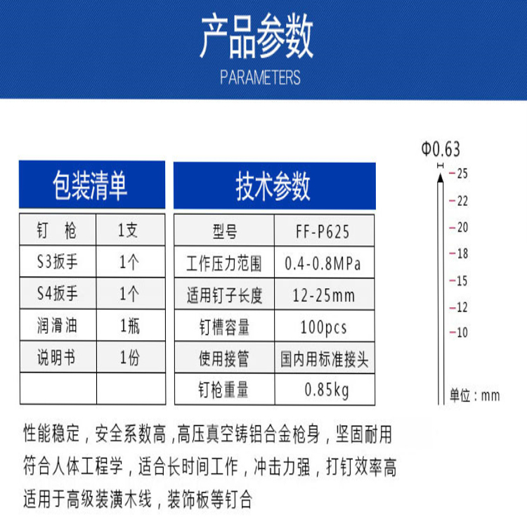 東成氣動蚊釘槍FF-P625耐磨接頭高精度車床造型 嚴絲合縫,