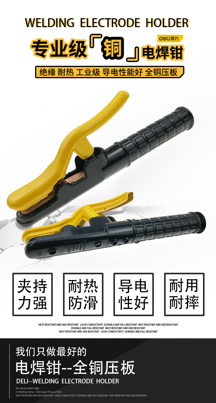 得力專業(yè)級(jí)電焊鉗300A紫銅全銅壓板小型電焊夾子 焊把鉗焊條夾子