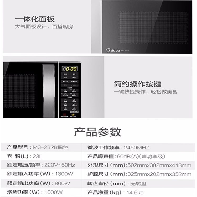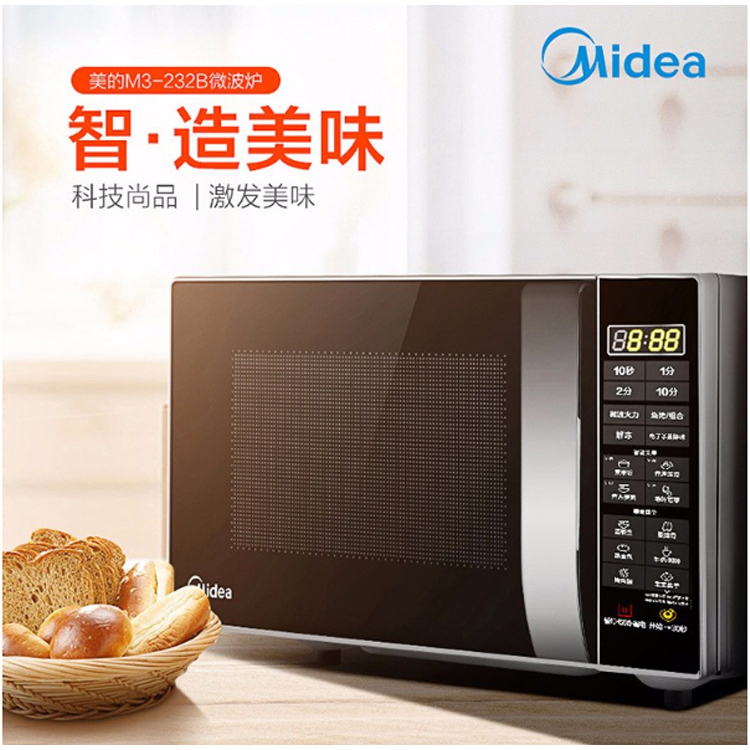 美的(Midea)M3-232B 多功能家用微波爐 光波燒烤電烤箱一體機(jī) 智能濕度感應(yīng)