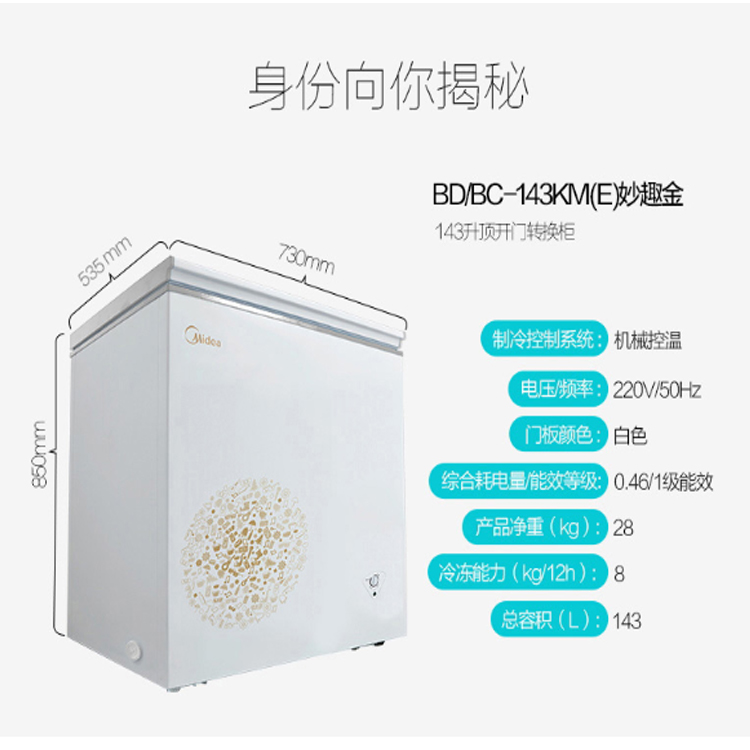 美的(Midea)143升冷藏冷凍轉(zhuǎn)換冰柜 迷你小冷柜 一級能效 單溫小冰箱