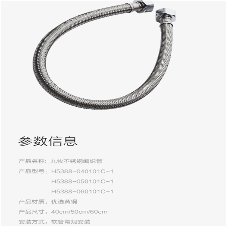 九牧健康編織管,8股304不銹鋼加密編織,光滑不扎手,安全更防爆,鉻色外觀