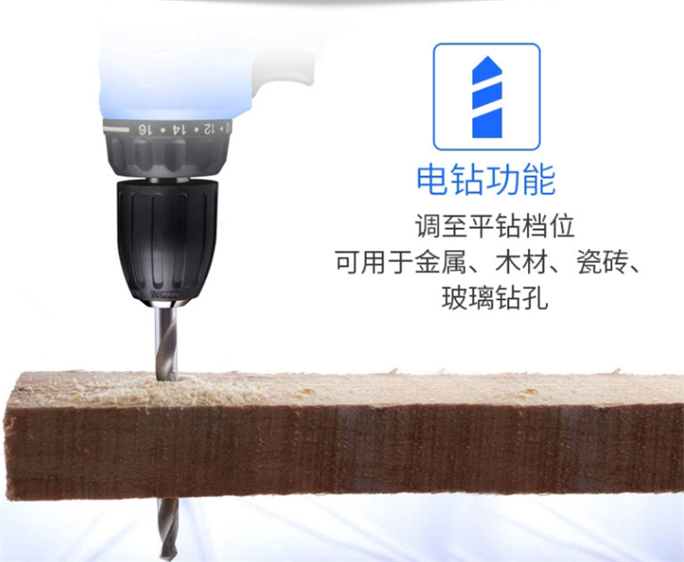 東成充電式起子電鉆調(diào)至平鉆檔位,可用于金屬、木材、瓷磚、玻璃鉆孔。
