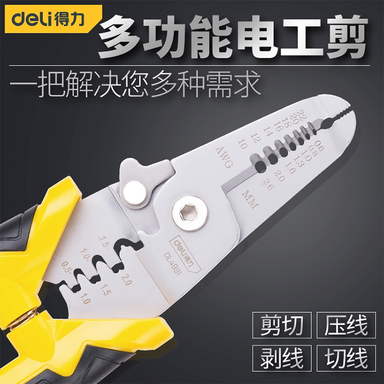 得力剝線鉗DL4991多功能電工鉗子壓線撥線剪線鉗剝皮器扒線鉗子