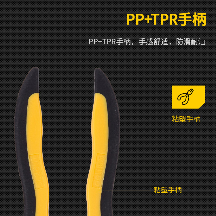 剝線鉗手柄采用PP+TPR材質(zhì),手感舒適,防滑耐油