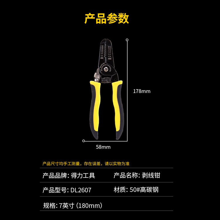 剝線鉗DL2607-7英寸,50#高碳鋼材質(zhì)/彈簧自動化開口/應(yīng)用廣泛
