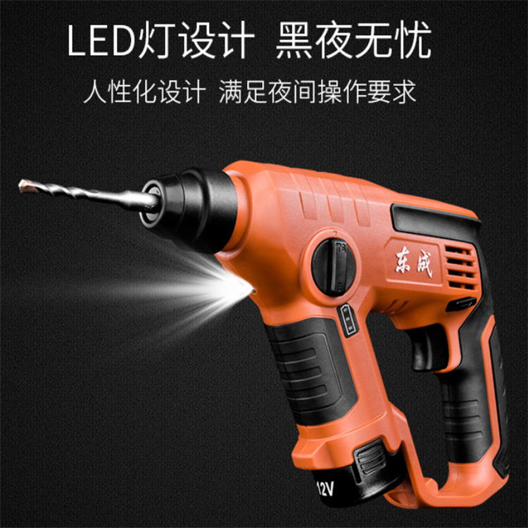 東成充電式電錘D、LED燈設(shè)計(jì),黑夜無憂,人性化設(shè)計(jì),滿足夜間操作要求。