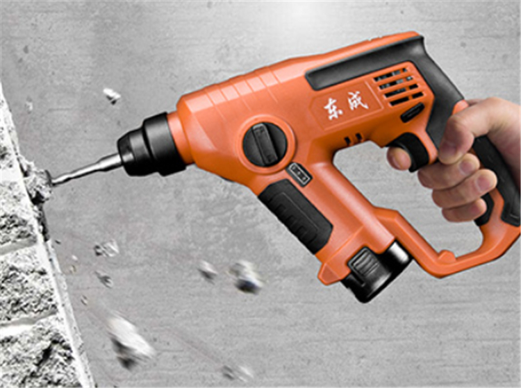 東成充電式電錘調(diào)至鍾擊檔位,可用于混凝土墻面打孔,巖石打孔、戶外廣告安裝