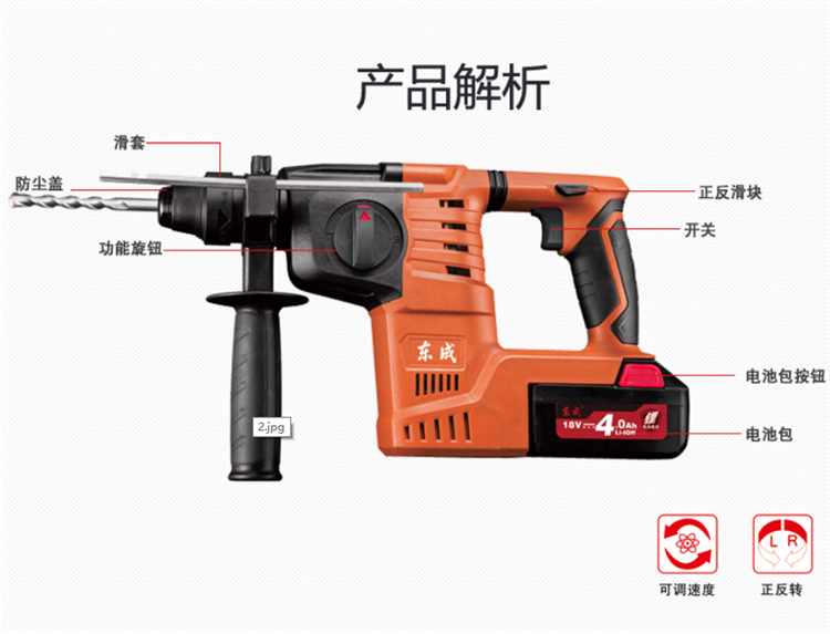 東成充電式電錘C、平鉆、鍾鉆、削鑿,可用于混凝土墻面打孔,巖石打孔、戶外廣