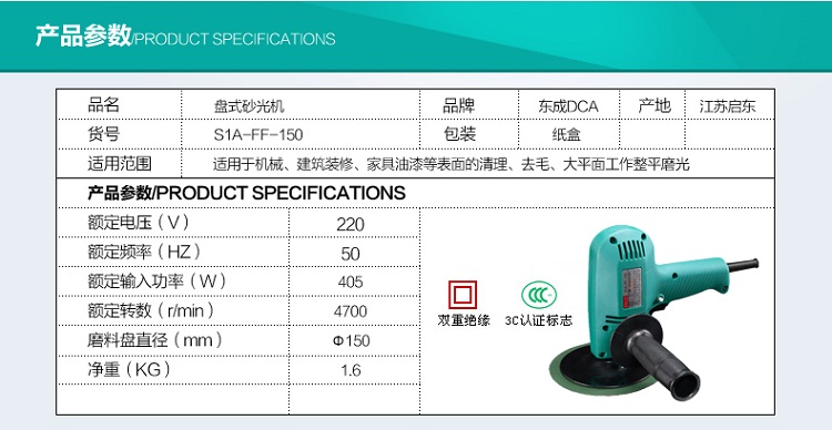 東成DCA砂光機(jī)S1A-FF-150電動(dòng)工具6寸盤工具盤式砂磨拋光機(jī)多功能