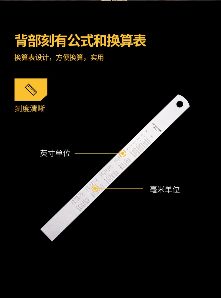 鋼直尺背部刻有公式和換算表,方便、實(shí)用