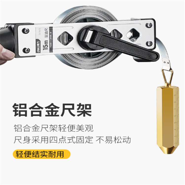 得力量油尺柴油石油油罐測深尺銹鋼銅頭碳鋼尺帶 測量20m