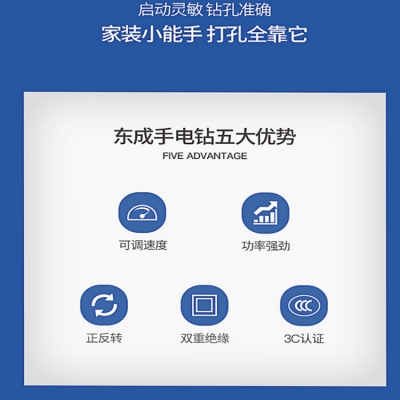 東成手電鉆 高品質(zhì)金屬三爪夾頭,同心度高,跳動(dòng)小,夾持緊固性強(qiáng)