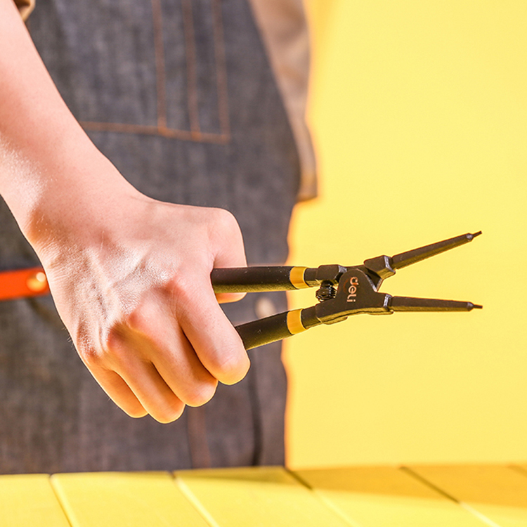 得力卡簧鉗DL20924外直外彎內(nèi)直內(nèi)彎,單色沾塑手柄,握感舒適。