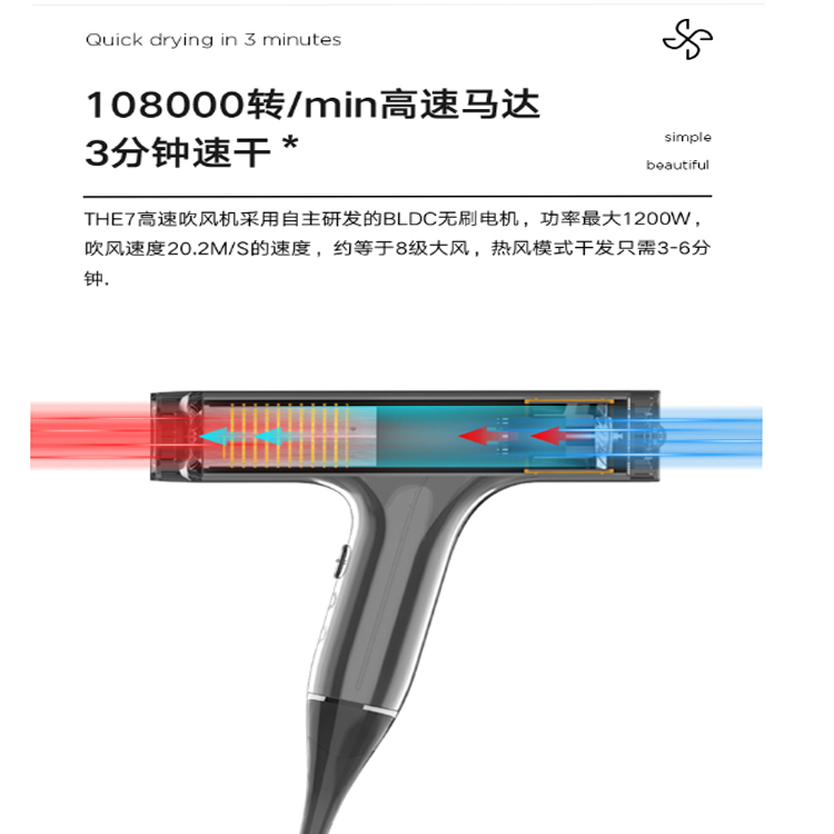 美的負離子恒溫電吹風(fēng)機高速出風(fēng),氣流直達發(fā)根,從里到外快速干發(fā)。
