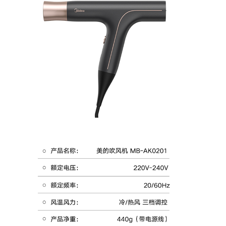 美的(Midea)吹風(fēng)機家用負離子護發(fā)大功率靜音恒溫電吹風(fēng)MB-AK0201