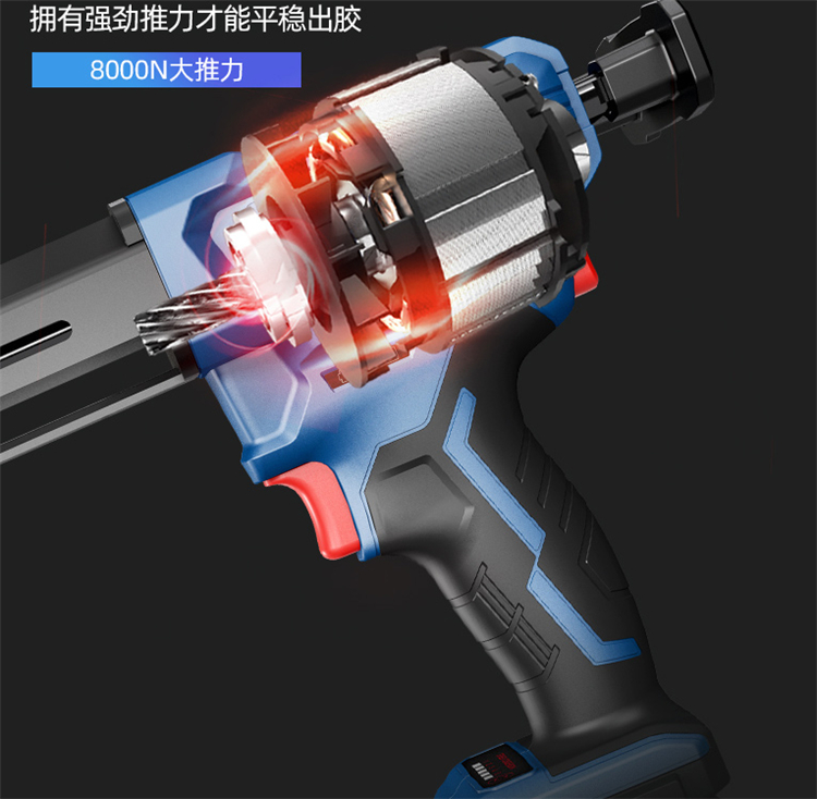 東成充電式打膠槍8000N大推力,平穩(wěn)出膠。自動(dòng)回槍泄力,停手瞬間自動(dòng)回槍泄