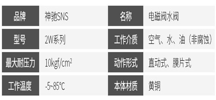 神馳2W系列電磁閥水閥產(chǎn)品參數(shù)