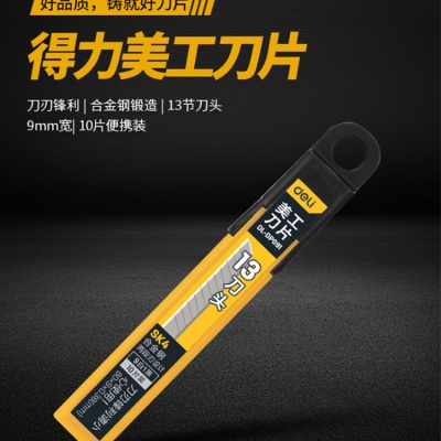 得力(deli) 13刀頭SK4合金鋼美工刀片/裁紙刀片 10片9mm DL-DP091