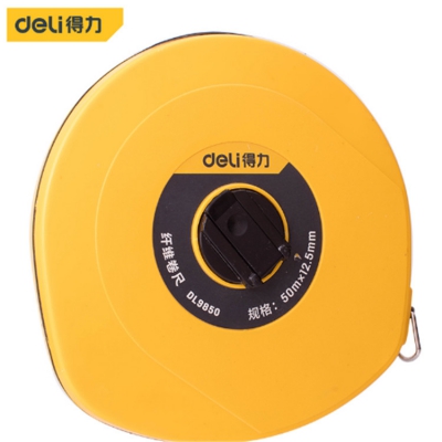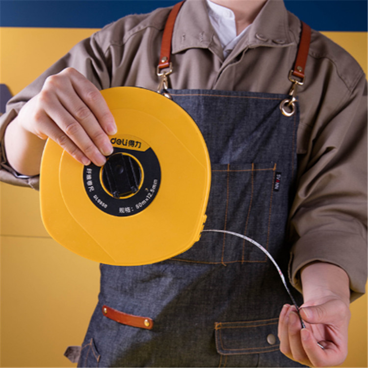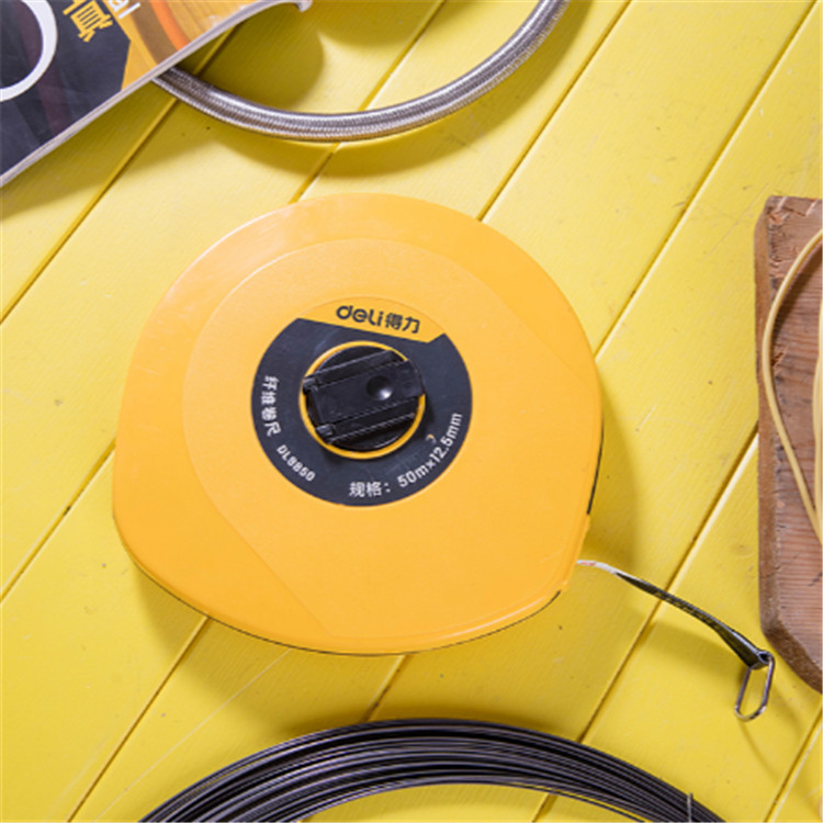 得力50米纖維卷尺玻璃纖維尺帶,抗拉伸、對折不易斷。