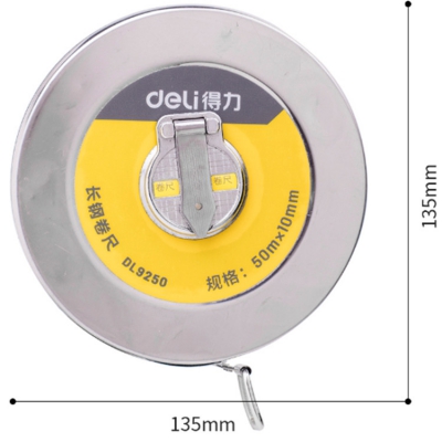 得力長鋼卷尺50m×10mm 不銹鋼外殼測量工具