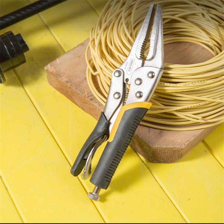 得力尖嘴大力鉗主要用于夾持零件進行鉚接,焊接,磨削等加工,也可當扳手使用
