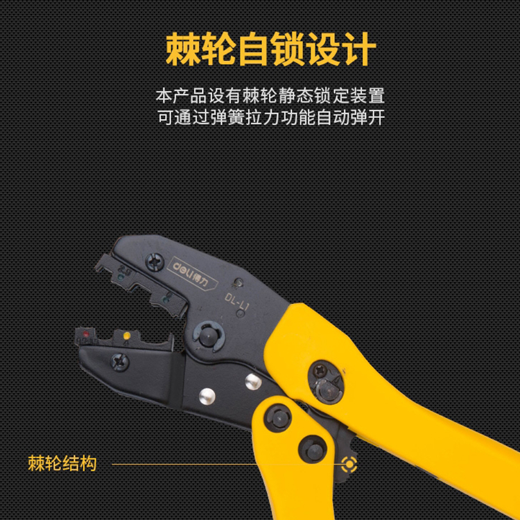 得力壓接鉗DL-L2電工快速冷壓鉗棘輪壓接鉗壓鉗電工夾線(xiàn)壓線(xiàn)鉗工具