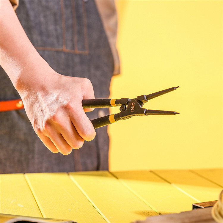 得力外直卡簧鉗鉗頭采用50#鉻釩鋼材質(zhì),精工鍛造,安全耐用