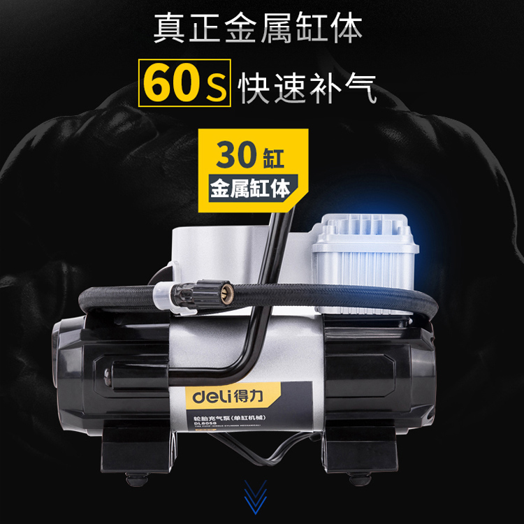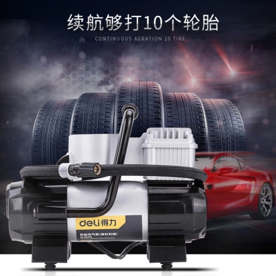 得力deli 車載充氣泵預(yù)設(shè)胎壓金屬雙缸便攜式12v打氣泵 帶燈可測(cè)